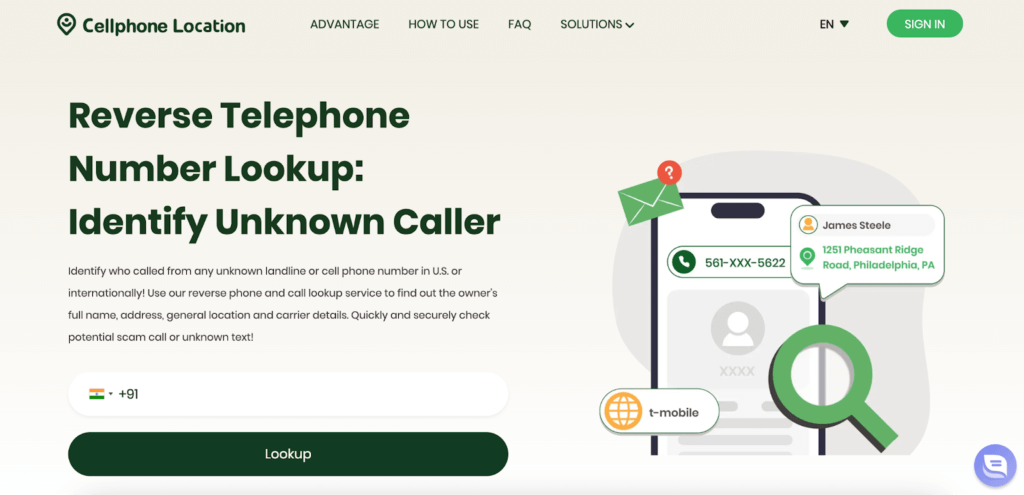 CellPhoneLocation is one of the most reliable lookup websites. It helps users with the information on the number like the owner’s name, general location, and the overall information about carriers and regions. This can assist in filtering suspicious or foreign calls without violating privacy.