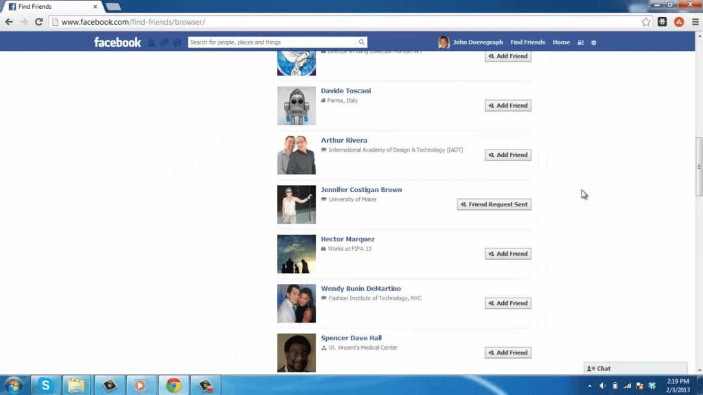 • Review profiles and mutual friends for possible matches