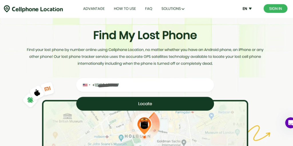 CellPhone Location is a fantastic third-party solution for locating your Verizon phone. With this, you can simply enter your phone number to leverage a three-pronged approach to locating it. CellPhone Location combines GPS tracking, cell-tower data, and Wi-Fi signals to triangulate a smartphone’s location within minutes. Here’s how it works: