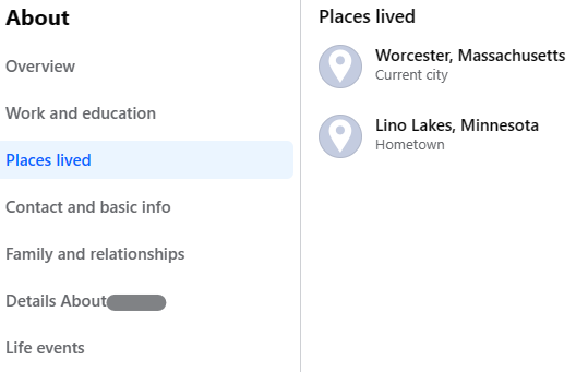 Facebook users often list their past cities and neighborhoods in the “Places Lived” section. This section can show years of movement.