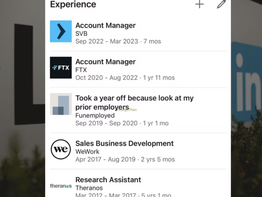 LinkedIn displays job locations for each employment period. These workplace cities help estimate where the person lived during that time.
