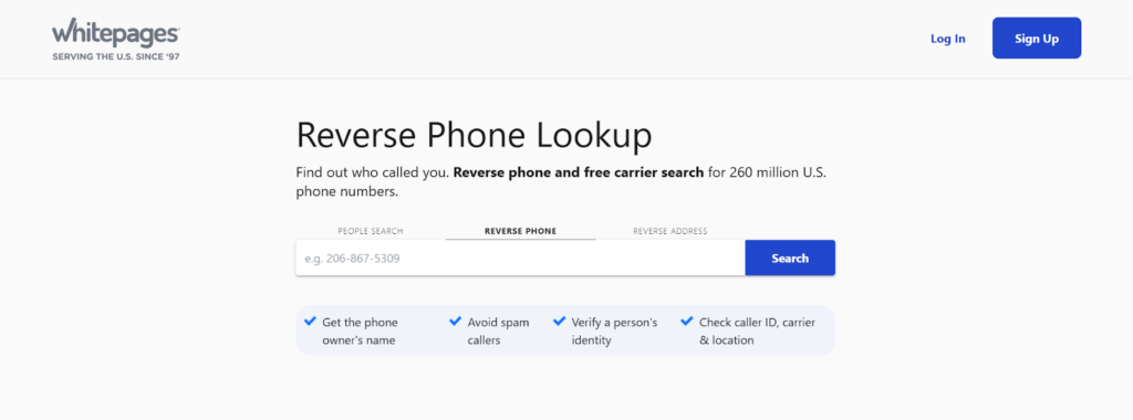- Open the Whitepages reverse phone lookup page in your browser.