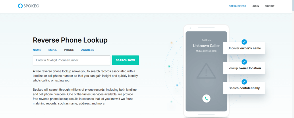 Spokeo is a premium reverse lookup platform that gathers data from public records, social media, court documents, and phone directories. It provides in-depth information, including owner name, address history, email IDs, social profiles, relatives, and property records. Spokeo is best for users who need detailed background insights rather than basic caller ID detection. Most advanced data requires a paid subscription for access.