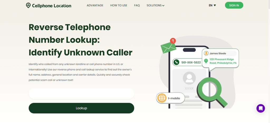Cellphone Location facilitates the lookup of mobile and landline numbers. It provides owner’s name, carrier details, approximate geographic location and public profile. It operates worldwide and can be used to identify unknown callers or prevent scams. Although simple and quick, this tool does not necessarily show a background report and some information may be inaccurate depending on privacy.