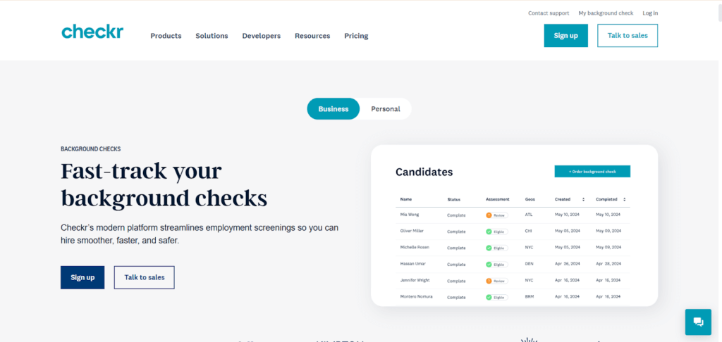 Checkr makes it easy to get professional-level background checks of professional level as used by employers and companies. It provides criminal history, employment checks, motor vehicle checks, and identity checks. Checkr is strictly compliant, thus suitable for the process of employment, scanning of the workforce, and in regulated sectors that demand verified information.
