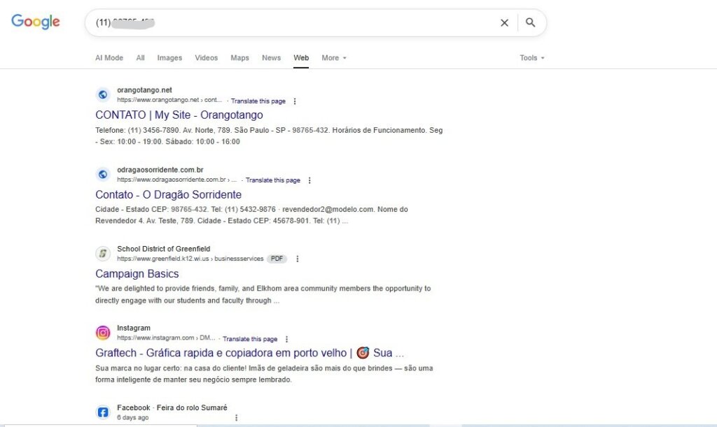 Social media networks like Facebook, Instagram and LinkedIn are also suitable for finding out who called you from that Brazilian phone number. Many users, especially those connected to small businesses, publish posts with their phone numbers for easy access. Other private individuals might link their profiles to their phone numbers as well. Here’s how you could use both situations to your advantage. Here’s an example using Facebook: